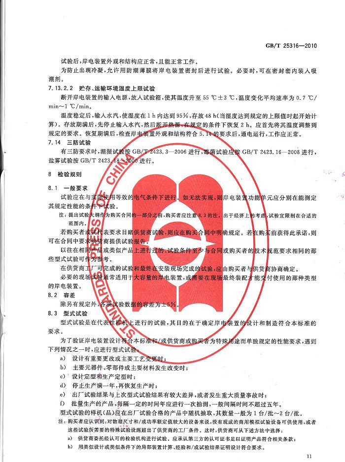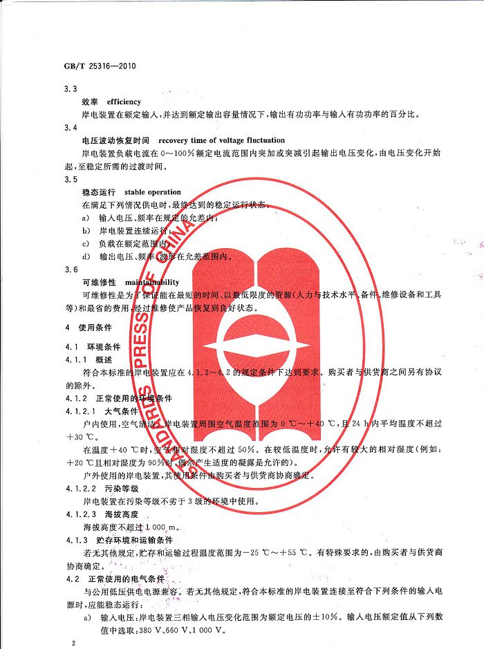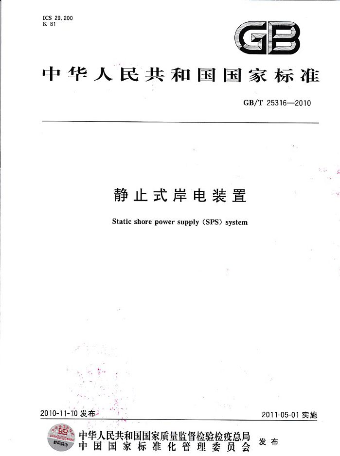創(chuàng)統負責起草制訂GB/T25316《靜止式岸電裝置》